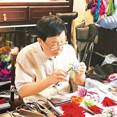 赵树宪制作绒花
