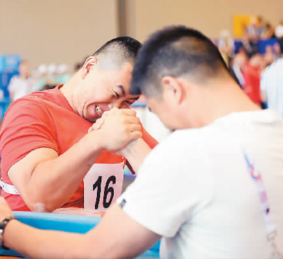 掰手腕比赛现场。