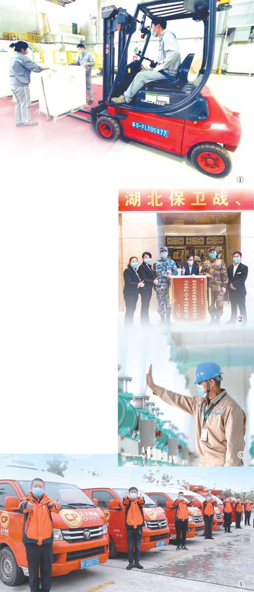 图④:正大食品(襄阳)有限公司集结车队,向襄阳多家医院一线医务人员捐赠食品。