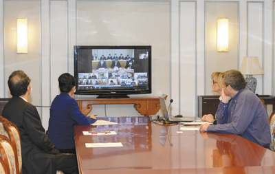 3月13日,中国同中东欧17国举行新冠肺炎疫情防控专家视频会议,分享和交流疫情防控经验及信息。图为克罗地亚代表参加视频会议。新华社发