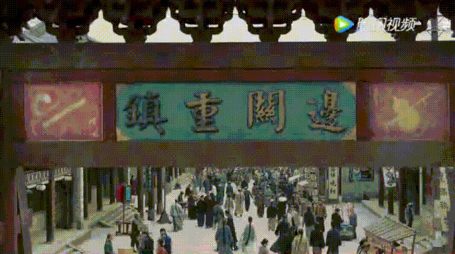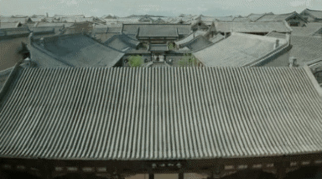 剧集一开篇,就扑面而来一股古典气质。伴随着旁白解说而来的,是一段颇为精彩的长镜头。镜头从大境门缓缓下摇,推过“边关重镇”的牌匾,转移到了街市上的烟火气,再推到吕家华丽的宅院之中。对准天井的俯拍镜头,将吕家的气派与豪华展现得淋漓尽致。