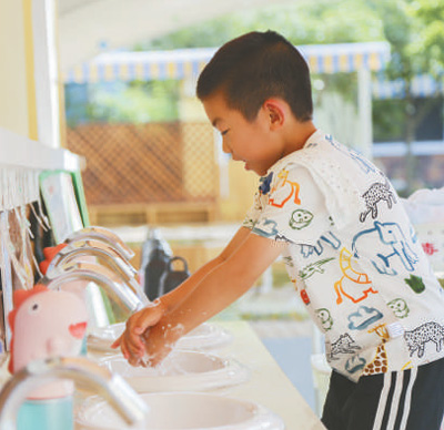 6月2日,上海宝山区乾溪幼儿园,小朋友在洗手。 王 初摄(人民视觉)