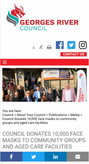 5月底我们请了乔治河的市长和议员主持和出席了我们几个捐赠仪式,并通过市政府的媒体发布、通过英文报纸报道,宣传了华人社区对澳洲抗疫的积极参与、捐献和贡献。