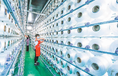 6月15日,国家统计局发布数据显示,5月份,全国规模以上工业增加值同比增长4.4%,环比增长1.53%。图为6月15日,工人在河北省遵化市高强化纤有限公司车间工作。 刘满仓摄(人民视觉)