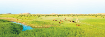 图②:库布其沙漠一角,水草丰美。