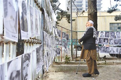 阿富汗民间组织“公正寻找者协会”举办“战争遇难者”照片展控诉战争罪恶。 新华社记者 代