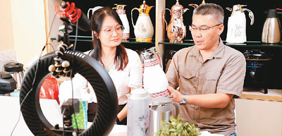 6月12日,广州轻出集团股份有限公司员工为第127届广交会进行直播排练。 新华社记者