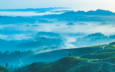 6月5日,晨雾中的重庆市南川区兴隆镇金花村。 瞿明斌摄(人民视觉)