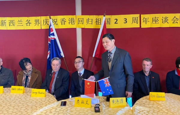 中國駐奧克蘭肖業文副總領事在講話中用英語介紹了香港所取得的輝煌成就,高度贊揚“一國兩制”的方針政策使香港發展穩定。特別是《香港國安法》填補了國家安全法的漏洞,是正當之舉,必要之舉,有助於維護國家主權,安全發展利益,保障香港長治久安和繁榮穩定發展。肖業文副總領事對一貫支持中國政府的經濟發展以及和平統一的新西蘭政府表示感謝!