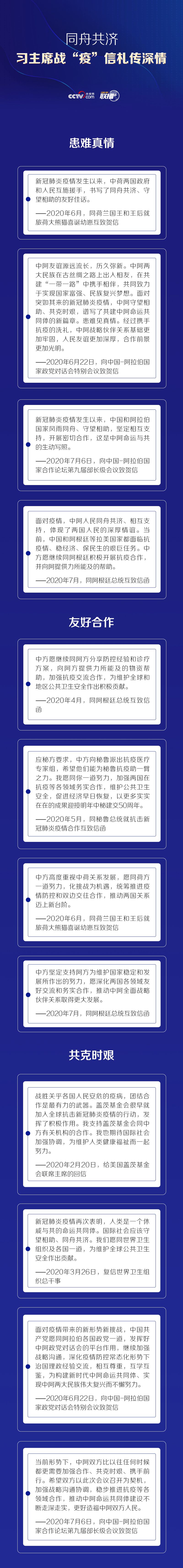 新冠肺炎疫情发生以来,习近平主席频频通过信函、贺信等形式与世界各国领导人和国际组织负责人等保持联系,一纸信札传递战“疫”信心和共克时艰的深情。