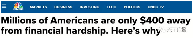 因为千百万的美国人,手里的钱超不过400美元。