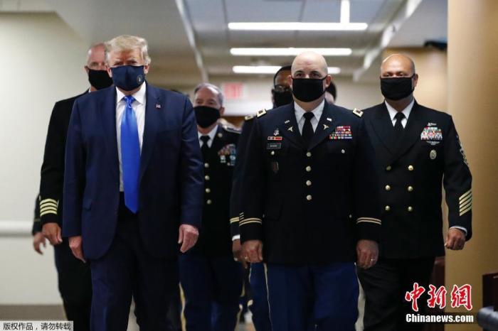 同日,美国总统特朗普在一家军事医疗中心访问时,首次被看到在公共场合戴口罩。而此前数月,特朗普一直拒绝听从专家建议,在公共场合佩戴口罩。特朗普表示,“我认为戴上口罩非常棒”,“我从来没有反对过戴口罩,但我相信戴口罩是分时间和地点的”。