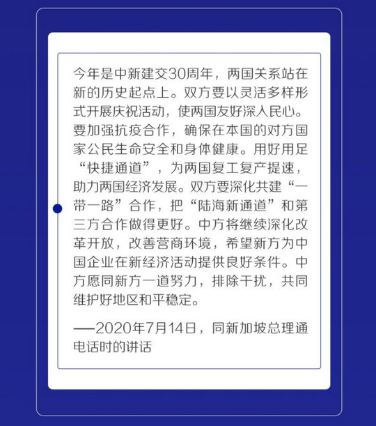 当前,新冠肺炎疫情仍在全球蔓延,多国面临外防输入、内防反弹的压力。7月14日,习近平主席分别同新加坡总理李显龙和泰国总理巴育通电话。