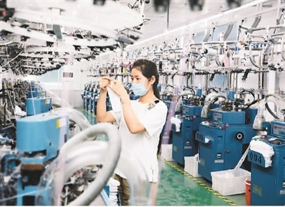 江苏省泗洪县认真执行各项惠企政策,积极贯彻落实“六稳”“六保”要求。图为7月15日,在江苏省泗洪经济开发区寰晟服饰有限公司内,工人正在生产新订单。 耿怀军摄(人民图片)