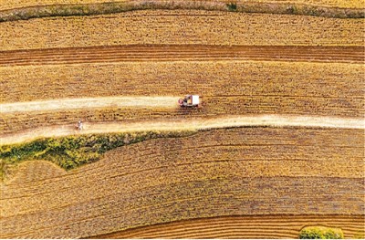 山东省昌乐县深入贯彻“六保”重要精神,确保今年夏收夏种夏管工作高效、安全、有序。图为在昌乐县孟家峪村,农民抢收小麦。 肖学平摄(人民图片)