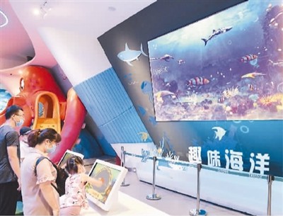 7月14日,国家海洋博物馆恢复开馆,游客有序游览。 周 伟摄(人民视觉)