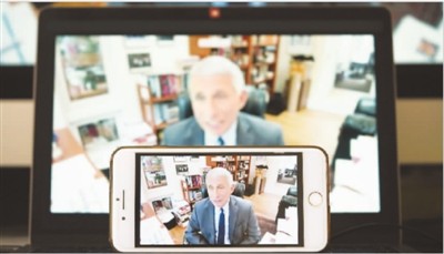 5月12日,福奇以视频会议方式参加在美国华盛顿举行的国会听证会。 新华社记者 刘 杰摄