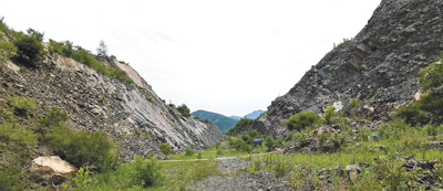 西大山本应是山脊的地方变成了绵延数百米的山谷,山谷两侧裸露着岩石。 本报记者 史一棋摄